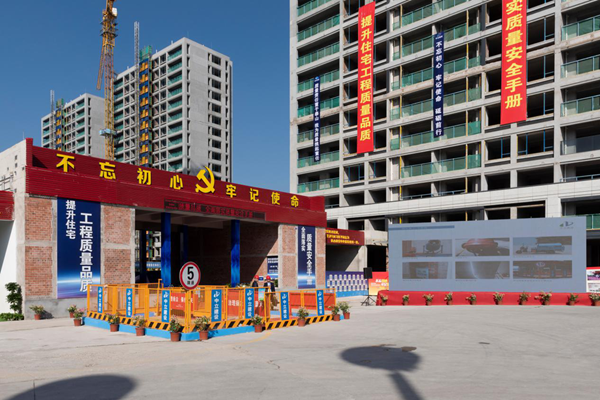 金周農居新社區北地塊項目從二次結構、PC小構件、工藝流程樣板、地下室交付樣板、套內交付樣板、架空層交付樣板、外墻、走道及文明施工、紅綠工地等各個方面展示了中立建設的特色和亮點。
