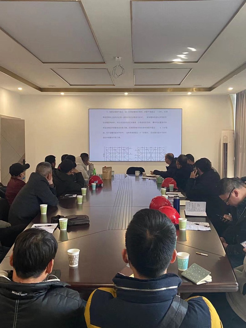會議期間安全安全管理部副經理周朱培就工具式模板支架規范向各安全員進行了解讀。安全員代表就項目現場安全管理經驗進行交流學習。